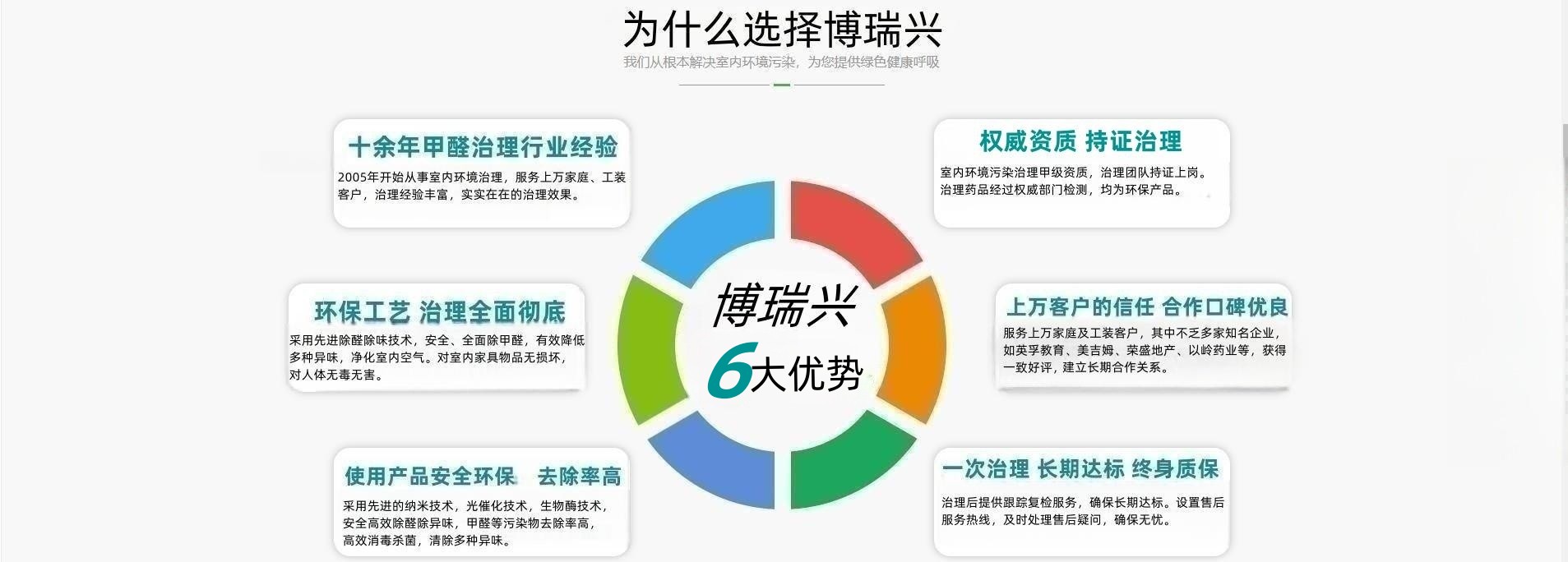 石家莊博瑞興生物科技有限公司是專業(yè)從事室內(nèi)環(huán)境凈化、室內(nèi)空氣污染治理的高科技環(huán)保企業(yè),公司致力于全方位解決工裝、家庭、寫字樓、醫(yī)院、賓館、學(xué)校、商場(chǎng)、銀行、娛樂場(chǎng)所等因甲醛、苯、甲苯、二甲苯、TVOC、氨及多種異味引起的室內(nèi)環(huán)境污染問題。 公司采用先進(jìn)的檢測(cè)儀器和科學(xué)的治理方法,專注的技術(shù)團(tuán)隊(duì)嚴(yán)格按照國標(biāo)技術(shù)規(guī)范開展服務(wù),擁有完善的質(zhì)量保障和售后體系,以提高室內(nèi)空氣質(zhì)量,改善人類居住環(huán)境為己任,不斷加強(qiáng)技術(shù)創(chuàng)新和團(tuán)隊(duì)的培養(yǎng)。 博瑞興堅(jiān)持持續(xù)性品質(zhì)、口碑與服務(wù),良心匠心精細(xì)化除醛除味,秉承著誠信、負(fù)責(zé)、務(wù)實(shí)的態(tài)度為您的提供健康、優(yōu)質(zhì)的環(huán)境,以優(yōu)質(zhì)的環(huán)保產(chǎn)品、專業(yè)的除醛技術(shù)和精湛的施工為每一位客戶提供誠摯的環(huán)保服務(wù)!